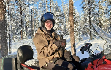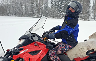 Moottorikelkan kyydissä matkustavan ikä vähintään 12 vuotta ja pituus yli 140 cm.